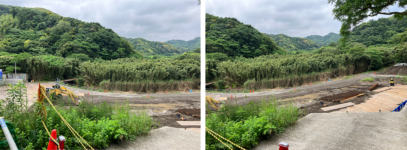 この土地に新施設が建設されます。工事も順調に進んでいるようです。